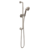 - Machined brass wheel spins as handshower is positioned on slidebar