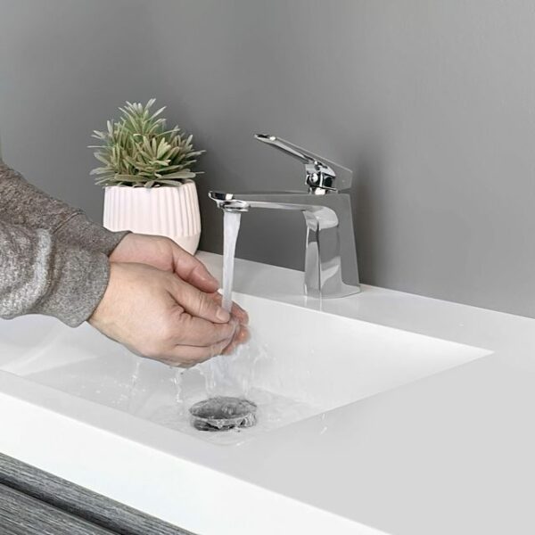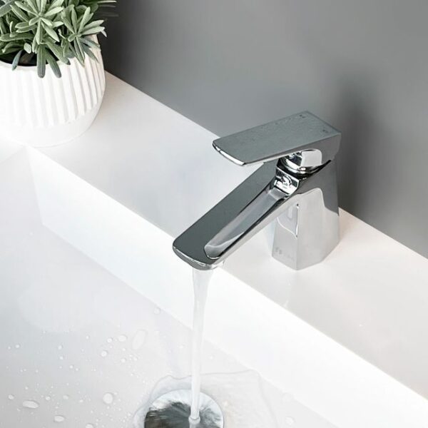 The Luvia 5 7/8″ polished chrome bathroom faucet brings modern sophistication and effortless functionality to your bathroom. Its single-handle design allows precise water flow and temperature control, while the taper rectangular handle creates a refined waterfall effect for an enhanced bathing experience.