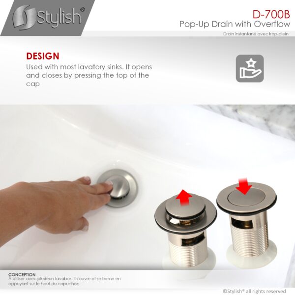 Its smart design is user-friendly, with a simple press-to-close and press-to-open mechanism for easy operation. This pop-up drain is designed to prevent clogs from hair, soap scum, and even small items like jewelry, keeping your sink free from blockages.