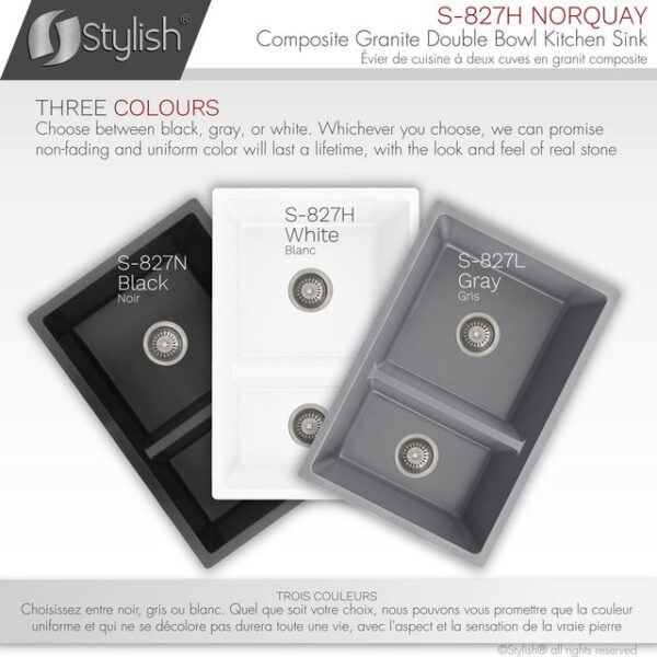 Be the first to review “STYLISH S-827H Dual mount 27 inch White Composite Granite Double Bowl Kitchen Sink”
